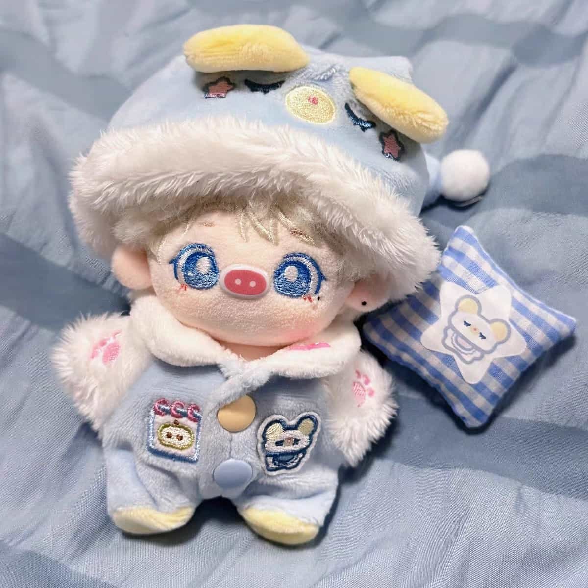 Conjunto de pijamas de urso com três peças para boneca de algodão de 10 cm